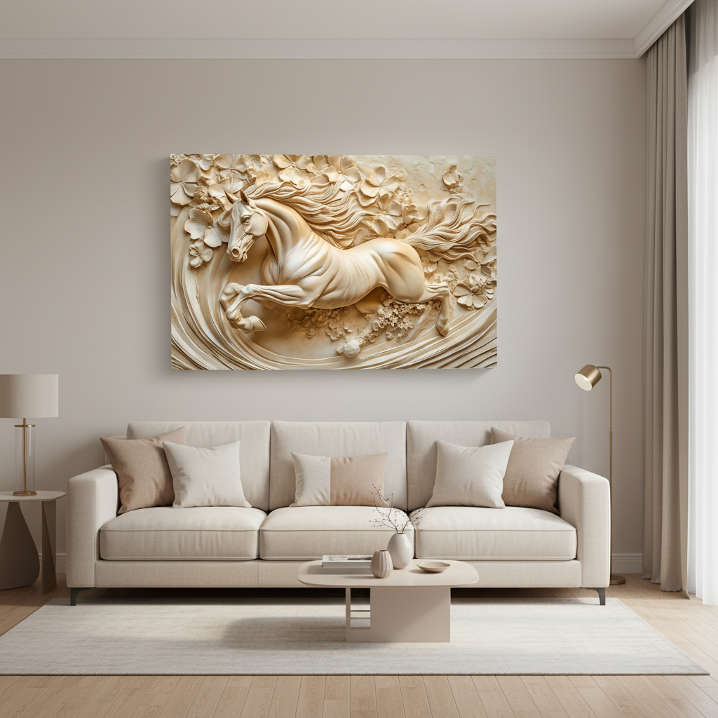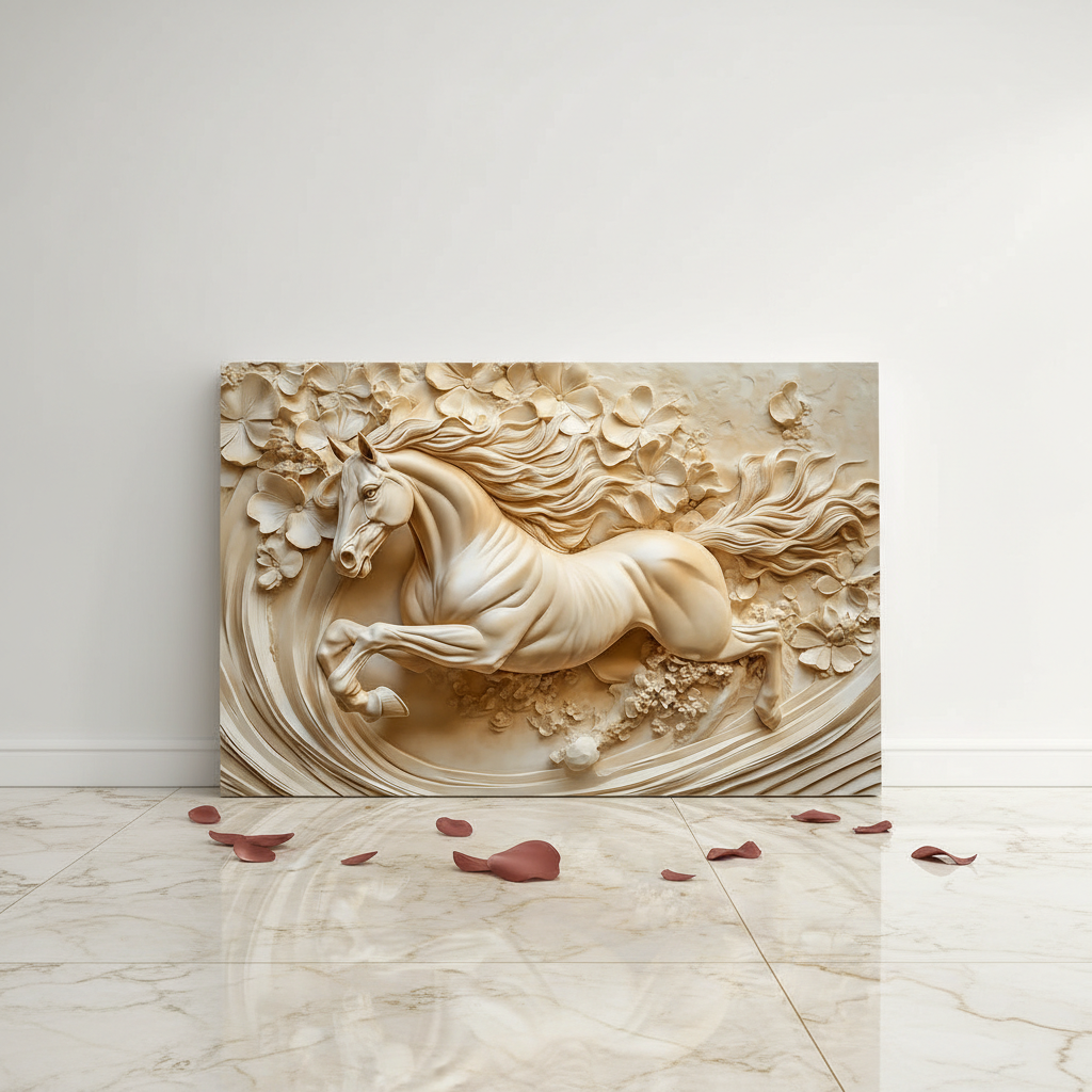 Tableau décoratif Cheval -florale- Cadre américain
