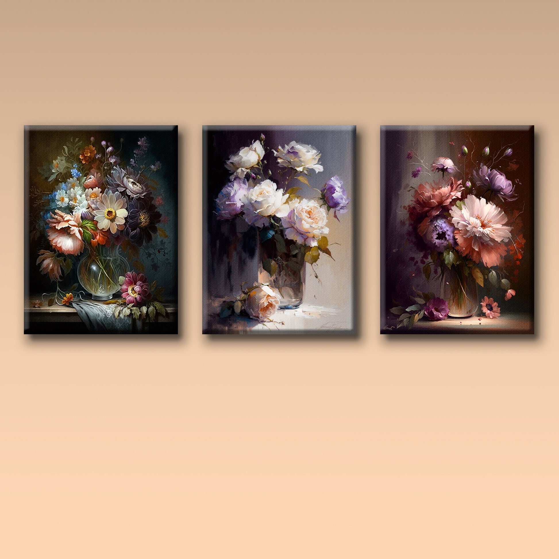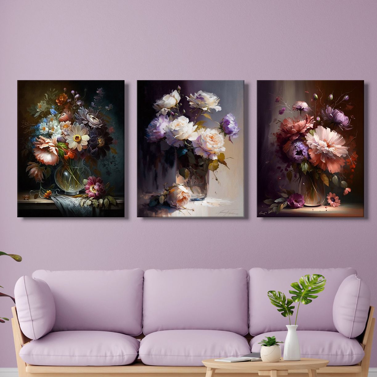 Tableau décoratif florale - Roses| Gerberas | Daisies | Peonies - Tableaux triptyque - "Sublime"