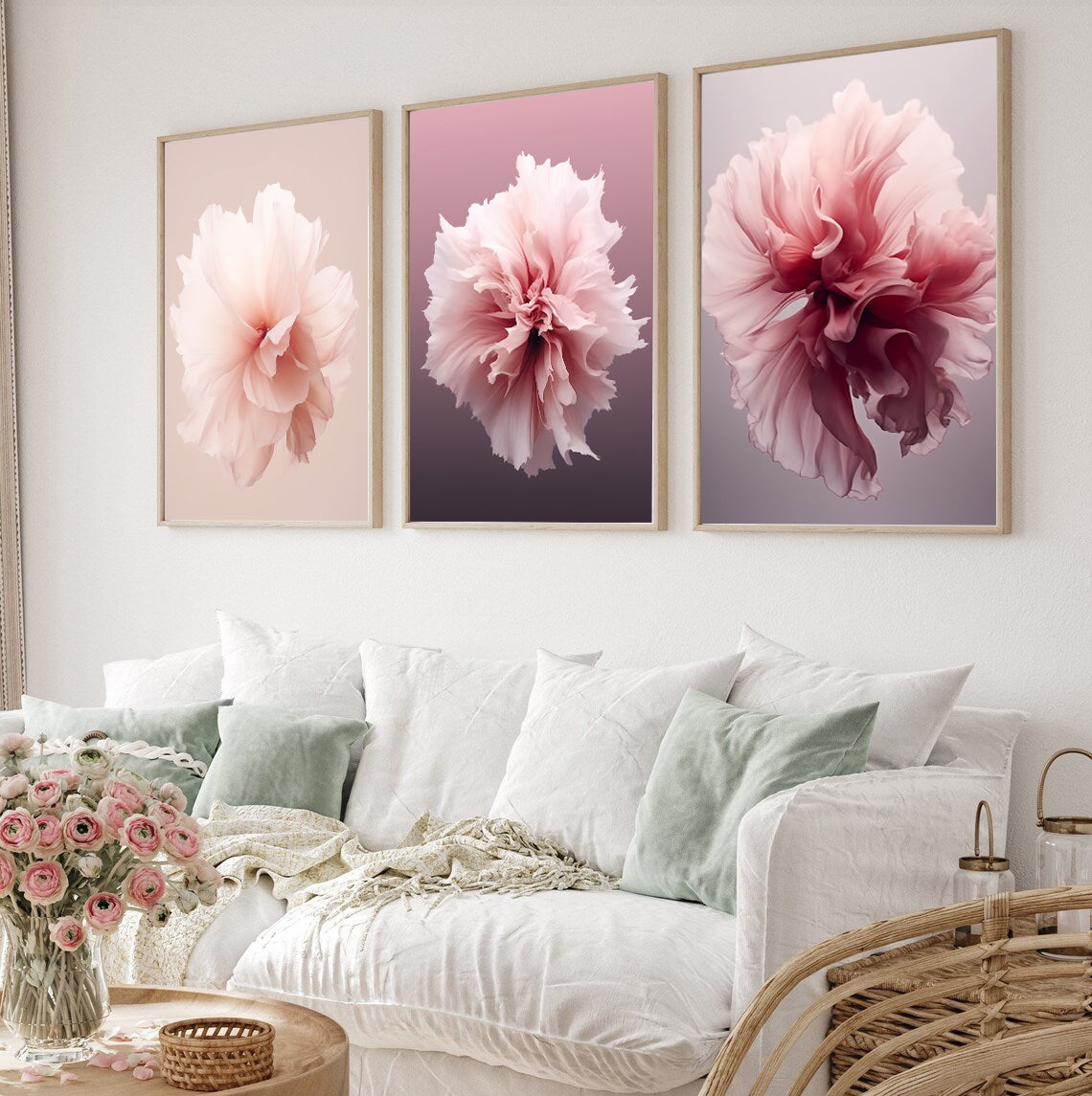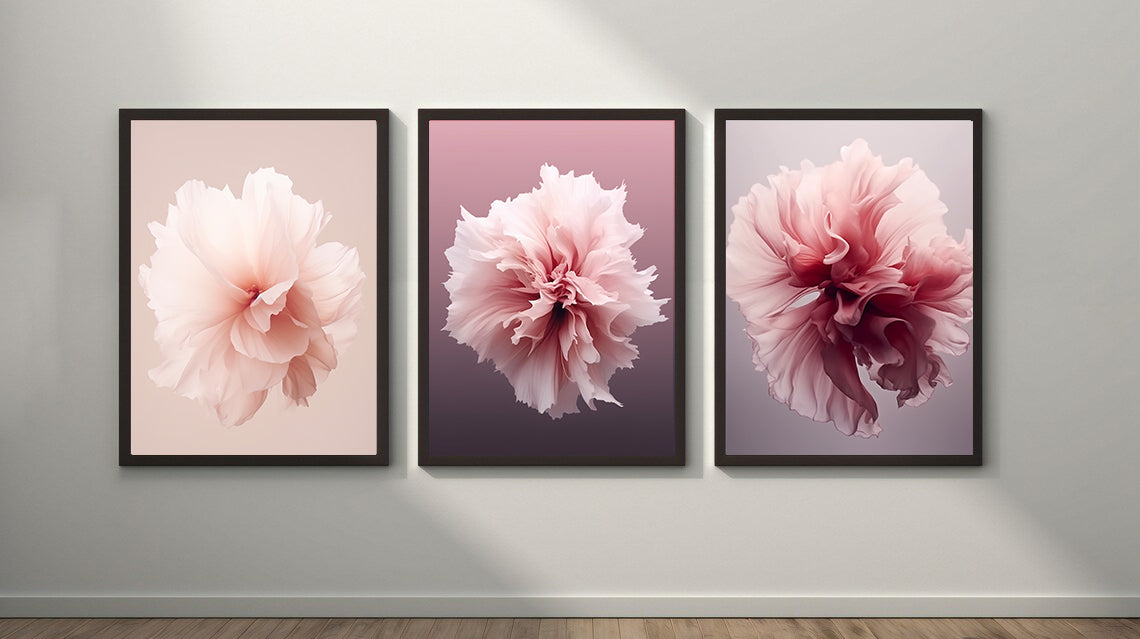 Tableau décoratif florale - Tableaux triptyque - “ Delicate”