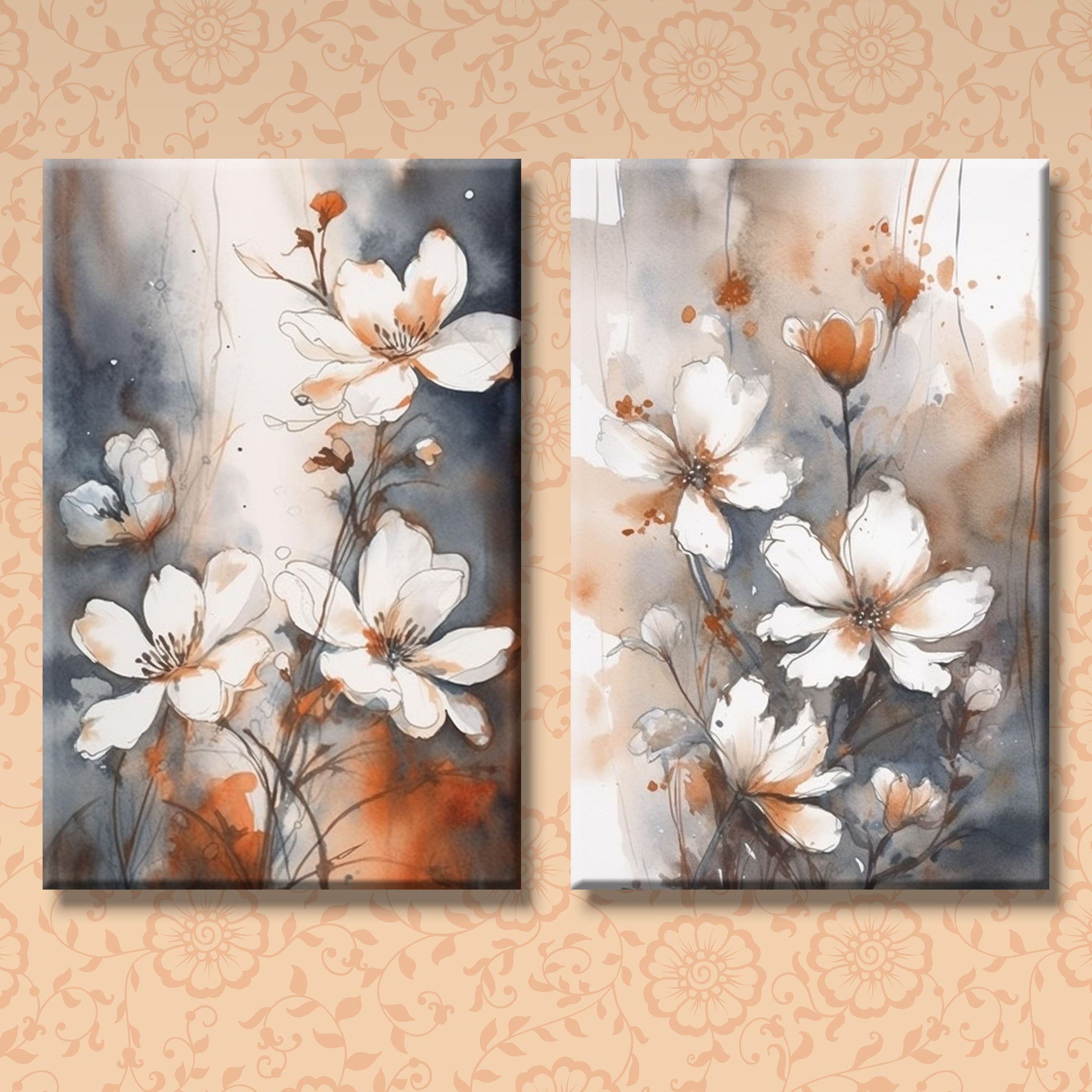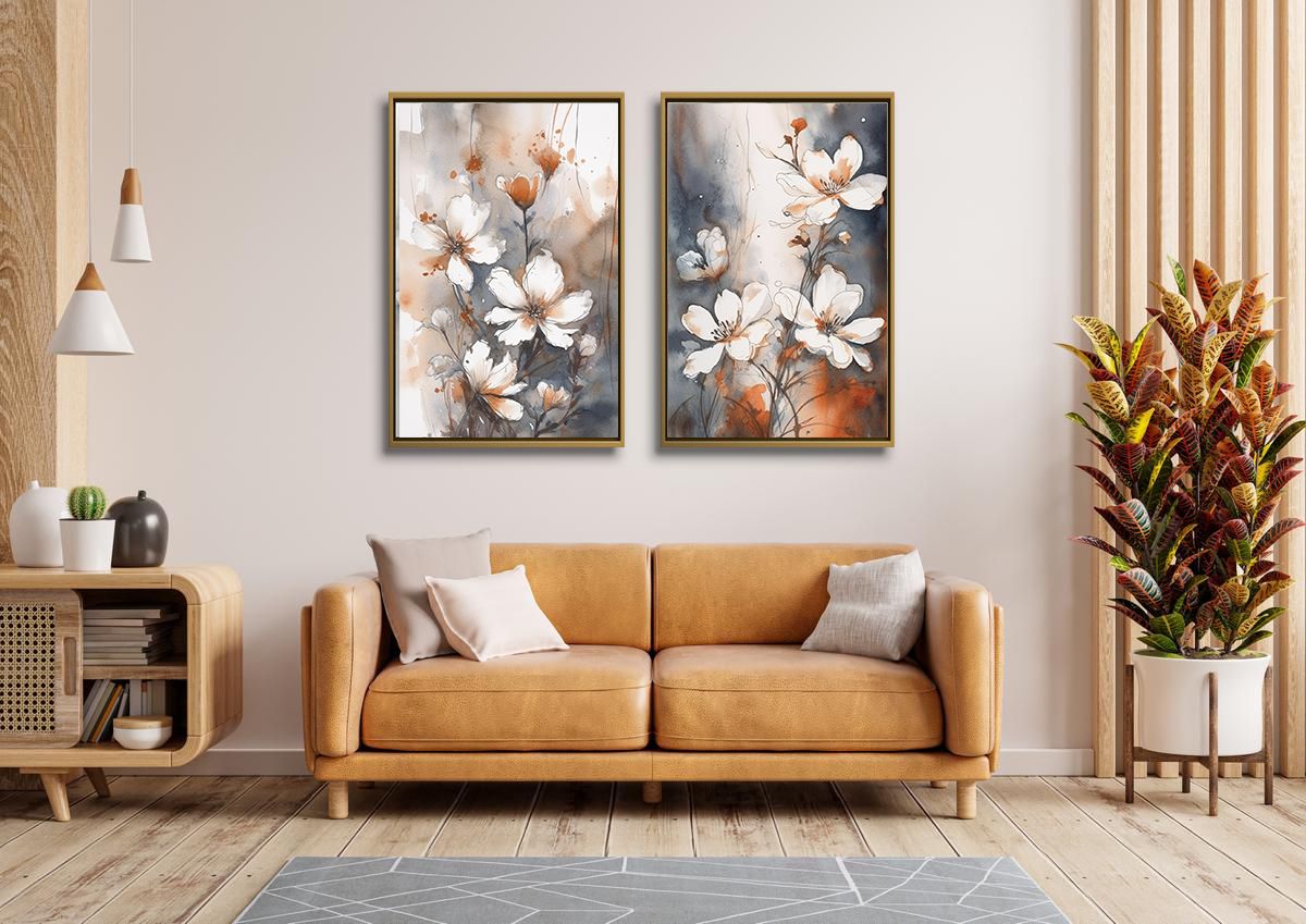Tableau décoratif florale - Anémone - Tableaux Diptyque - Cadre américain "Parfum"