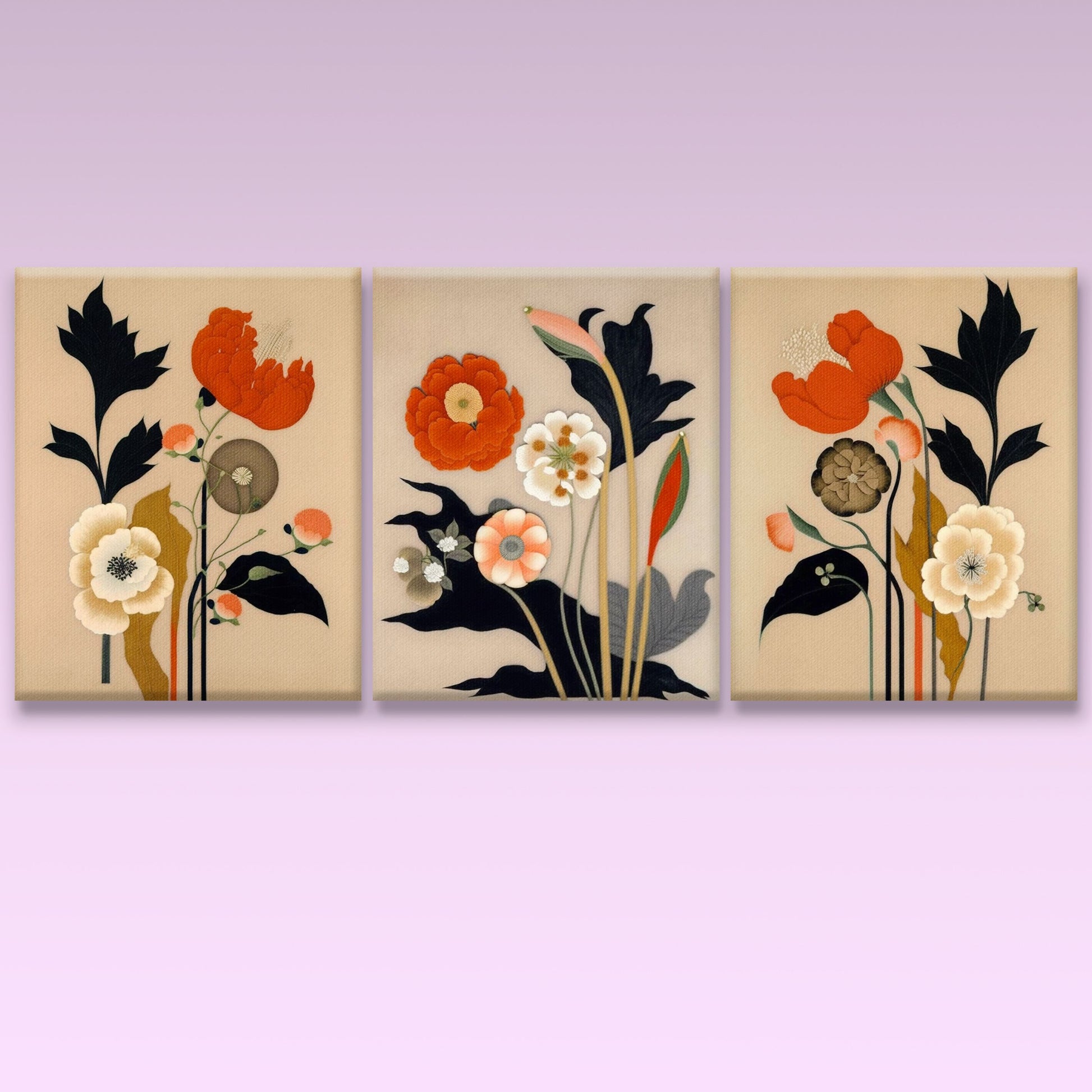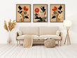 Tableau décoratif florale - Coquelicots - Tableaux triptyque - Cadre américain "red and white"