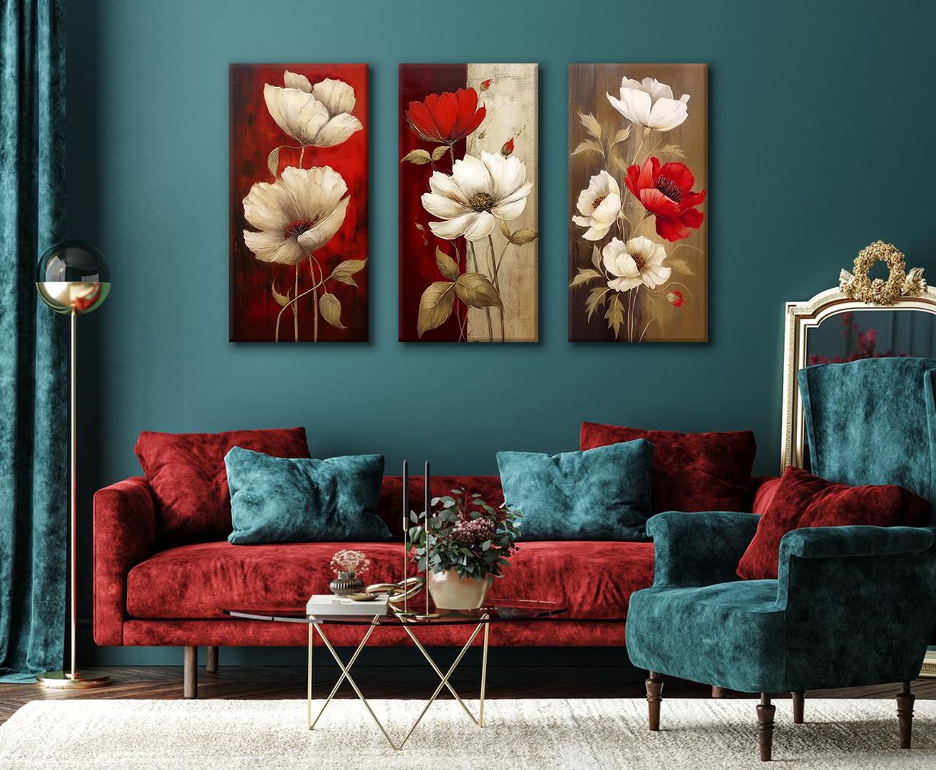 Tableau décoratif florale - Coquelicots - Tableaux triptyque - CADRE AMÉRICAIN "Charme"