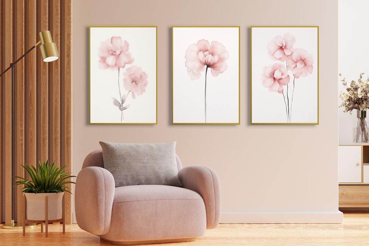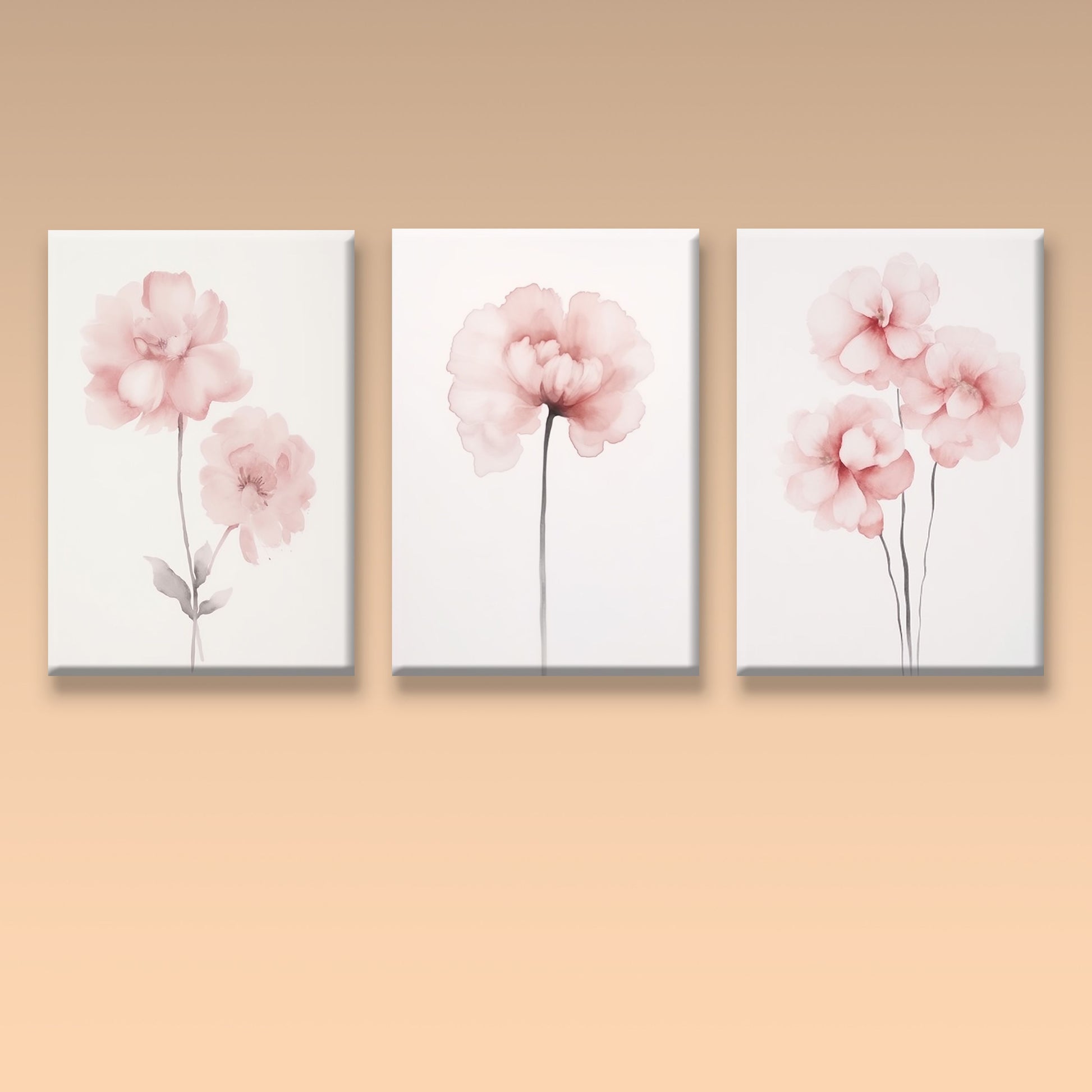 Tableau décoratif florale - Peonies - Tableaux triptyque - "Magique"