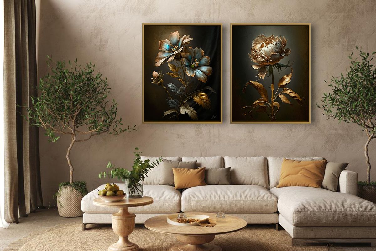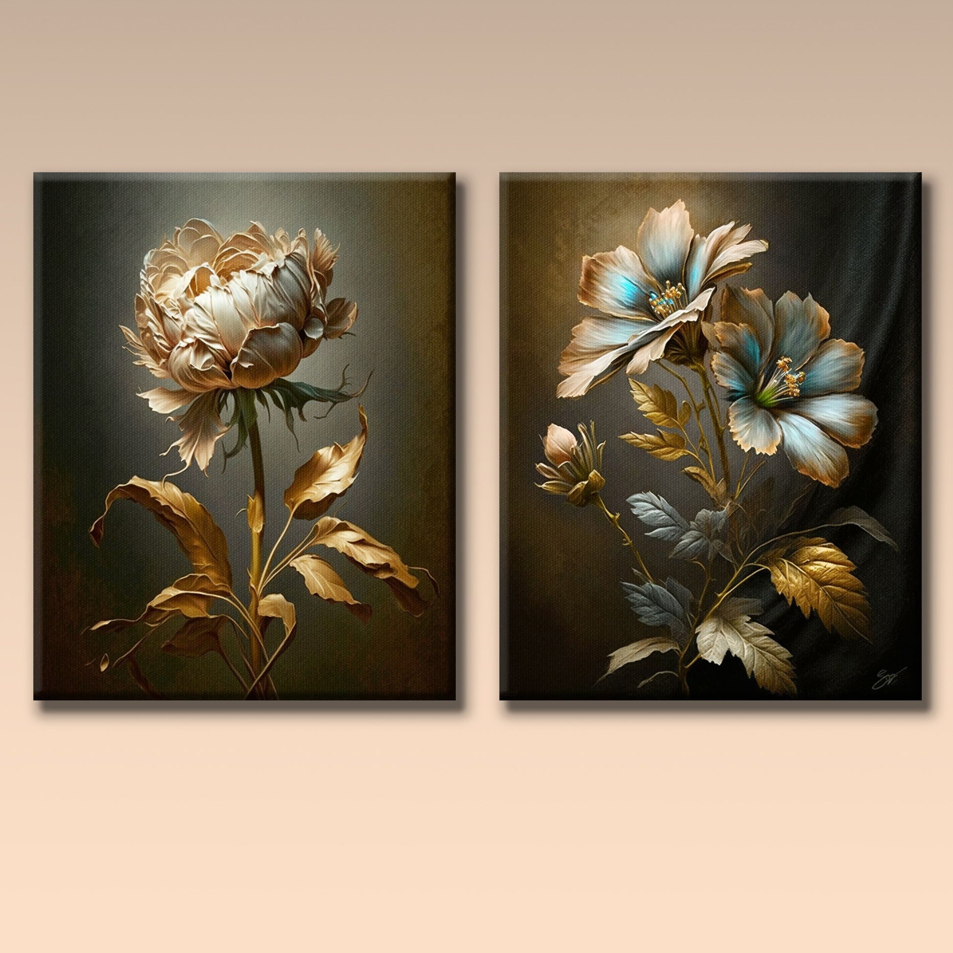 Tableau décoratif florale - Hibiscus, Peonies - Tableaux Diptyque - Cadre américain "Éthérée