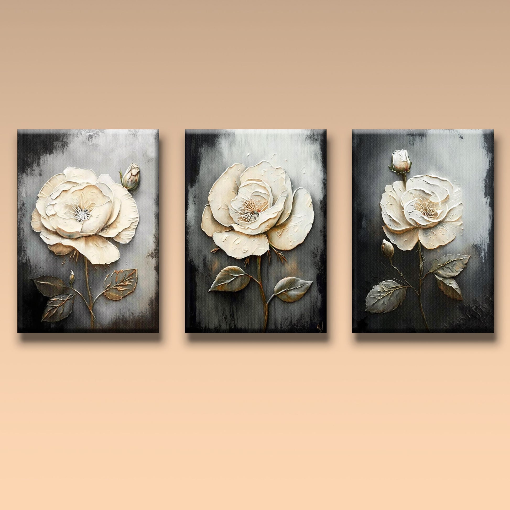 Tableau décoratif florale - Roses - Tableaux triptyque - "Sérénité"