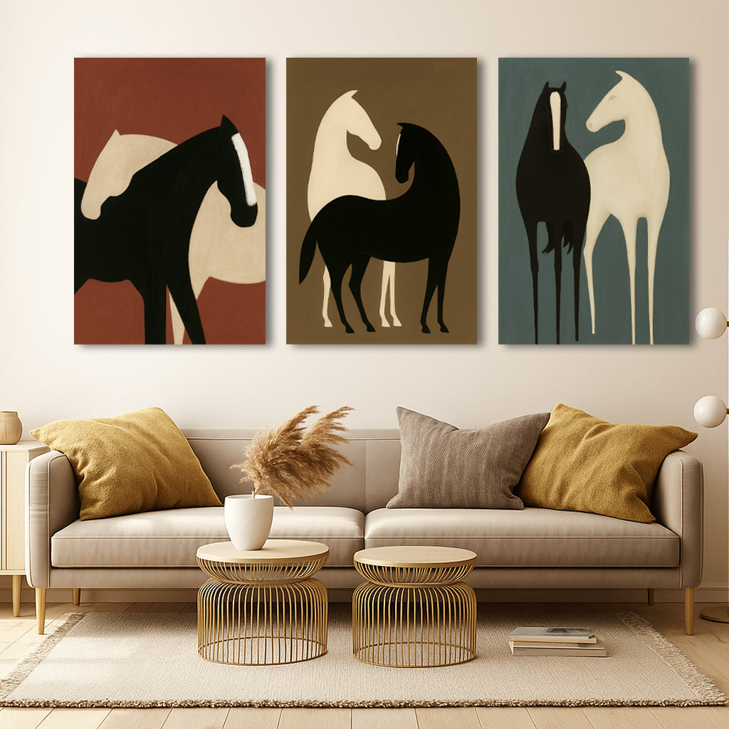 Tableau décoratif - Les Cheveaux - Tableaux triptyque - "Abstract"