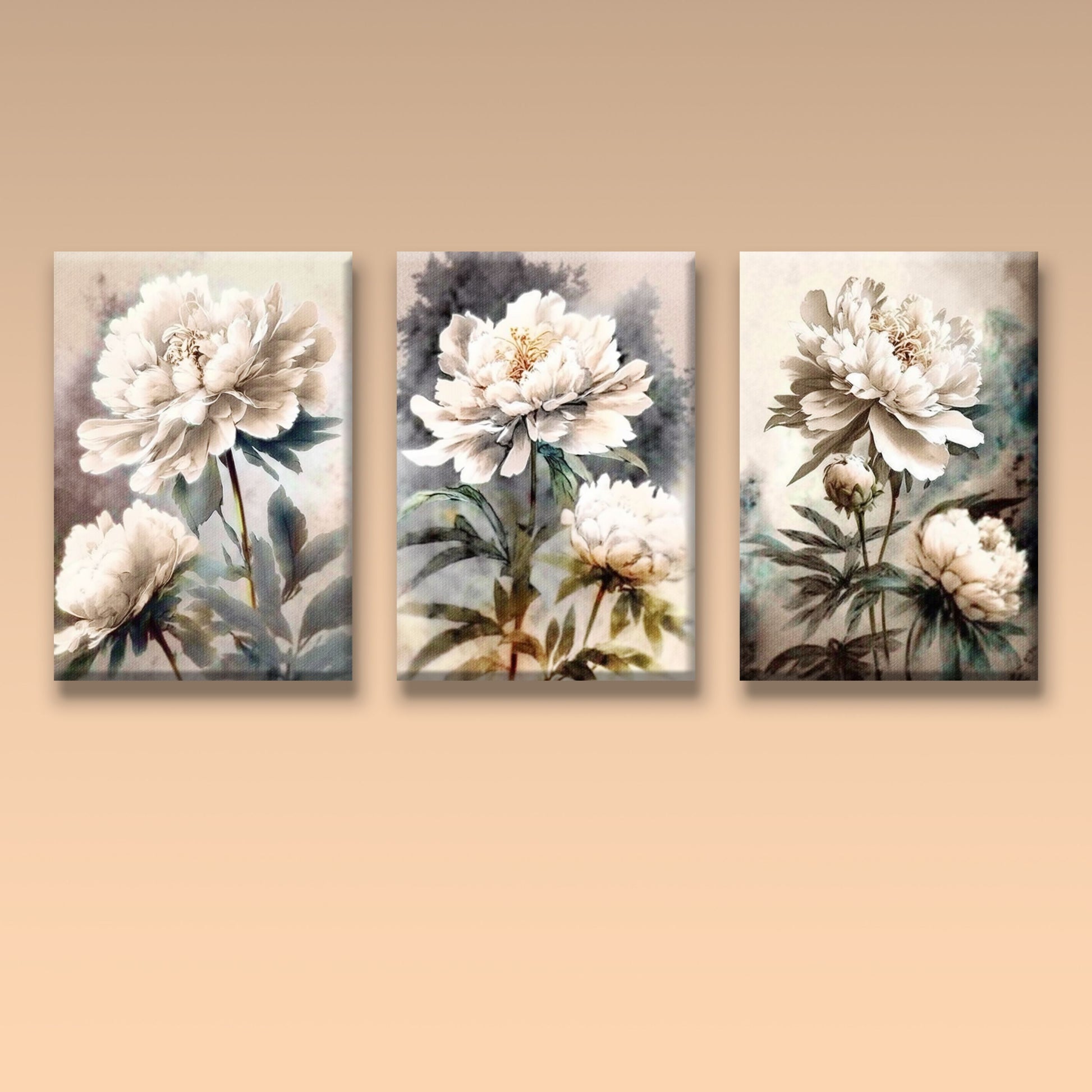 Tableau décoratif florale - Peonies - Tableaux triptyque - "Parfum"